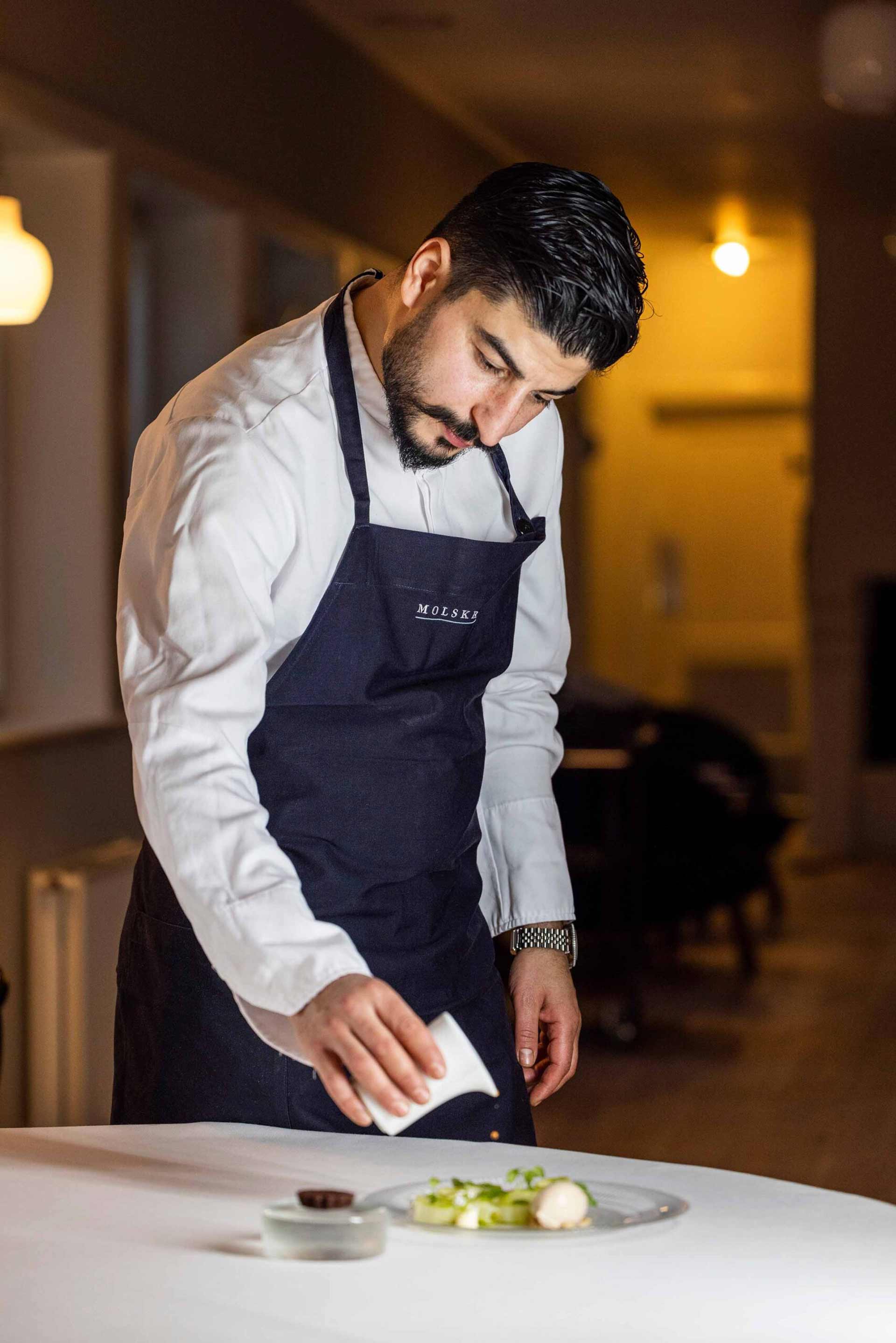 “Et måltid skal være mere end teknisk perfektion; det skal være en oplevelse, der huskes længe. På Molskroen ønsker jeg at give gæsterne en oplevelse, hvor de kan smage naturen omkring os, mærke passionen i køkkenet og glæden ved at være en del af netop dette sted. For mig er det essensen af gastronomi – og sådan ønsker jeg at bygge videre på Molskroens arv.” – Fahd Ibrahim